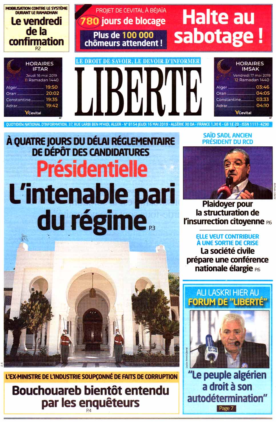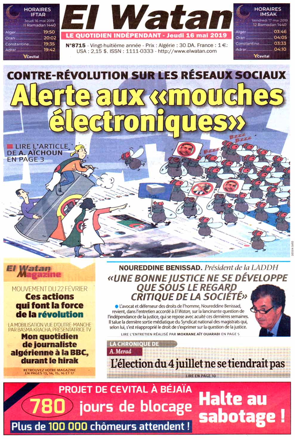 El Moudjahid L'Expression Le Soir Le temps El Bilad El Khabar Liberté Reporters El Watan