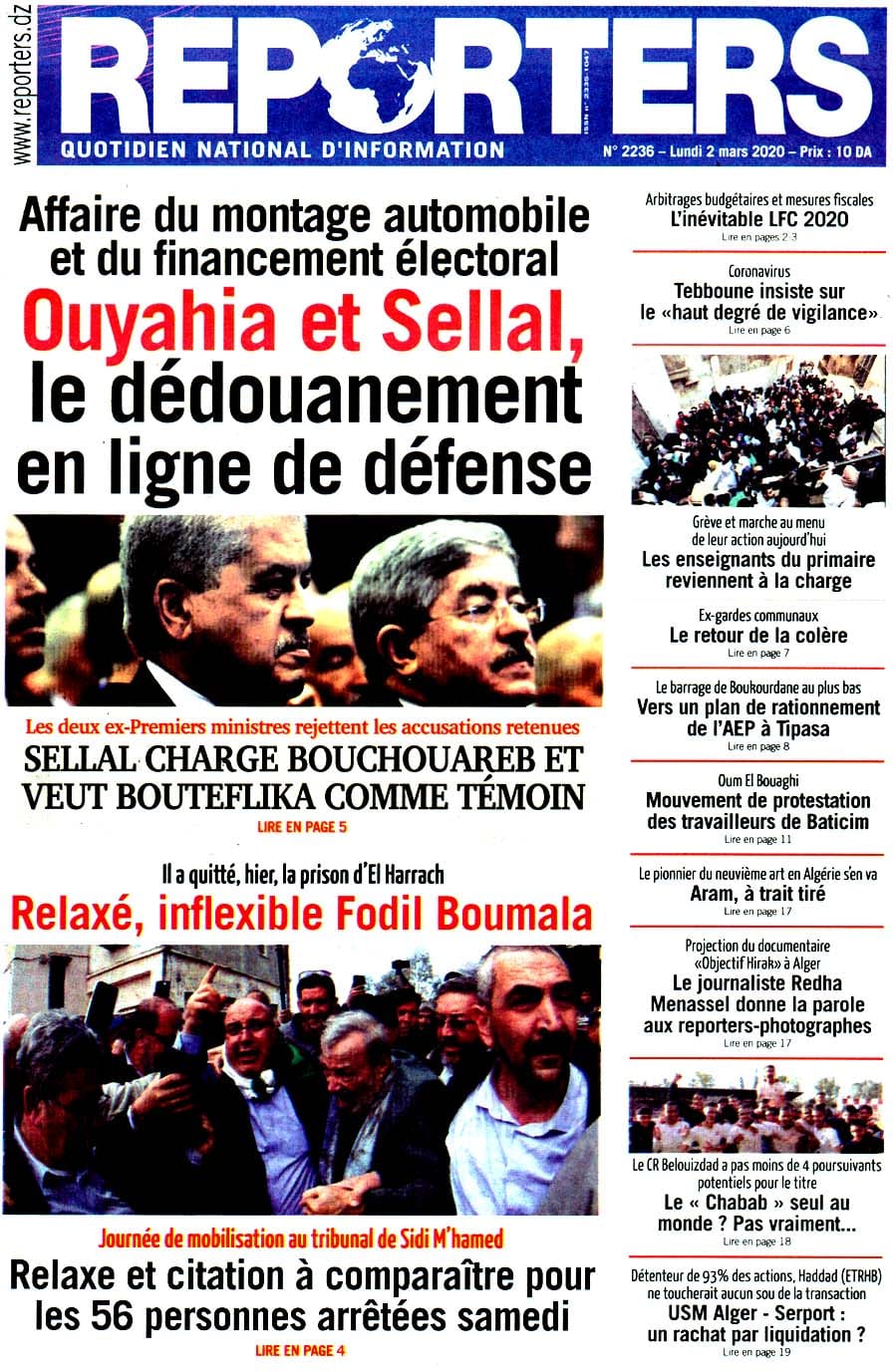 Revue de presse – Les Unes de vos journaux du lundi 02 mars