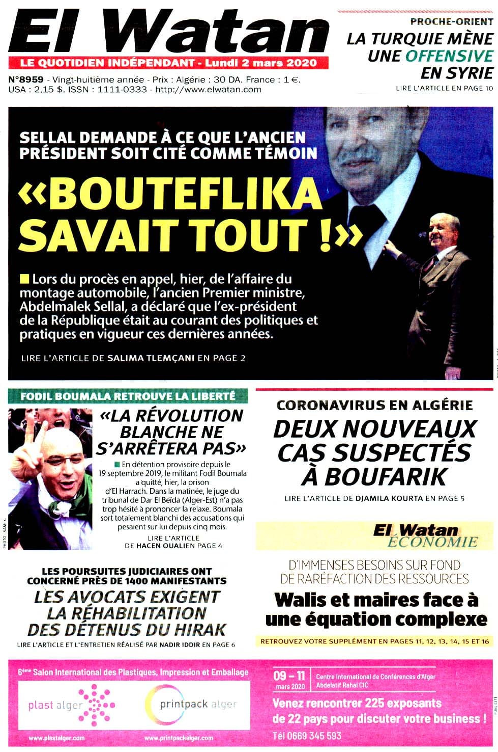 El Moudjahid L'Expression Le Soir Le Quotidien d'Oran El Bilad El Khabar Liberté Reporters El Watan