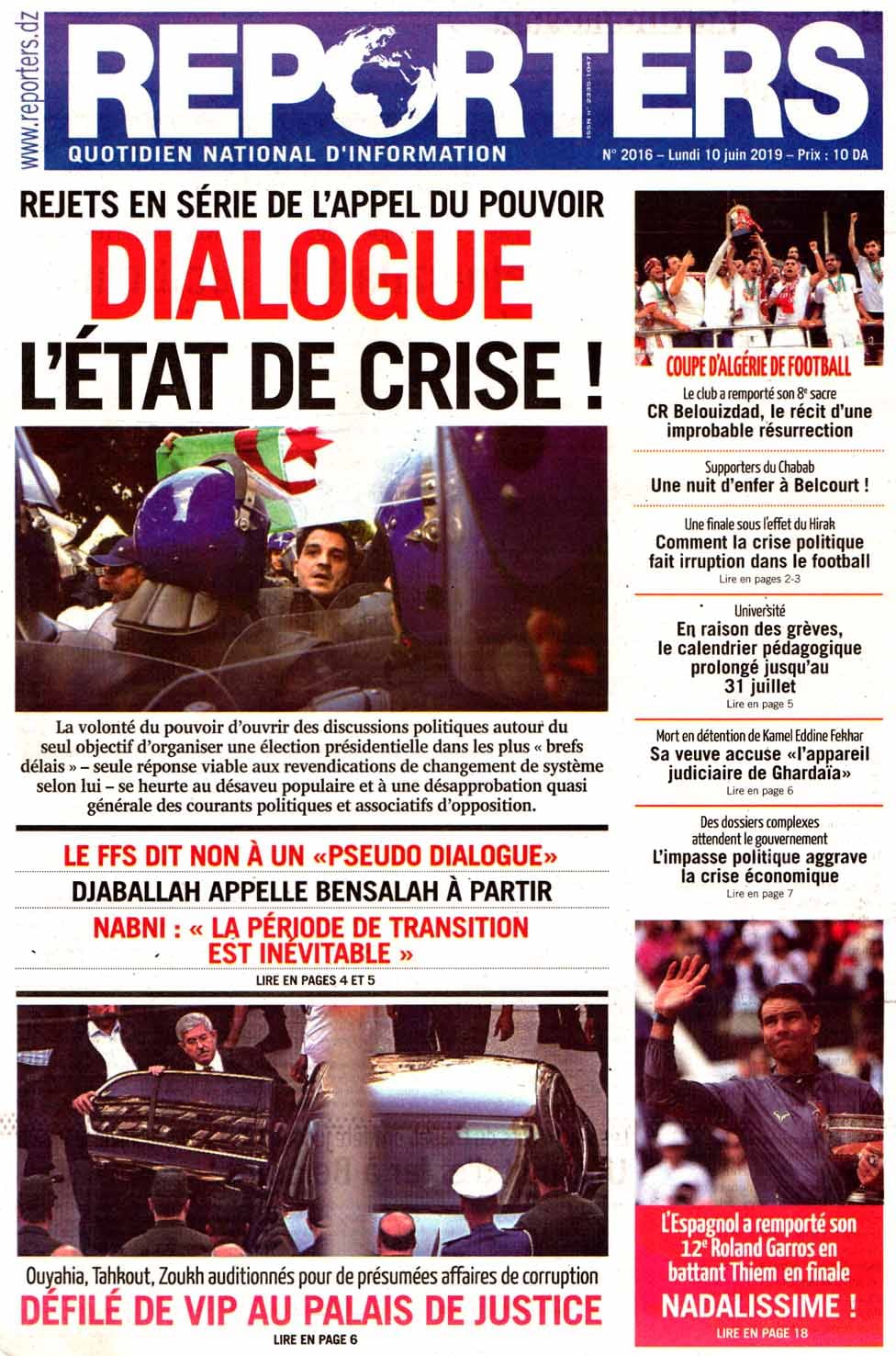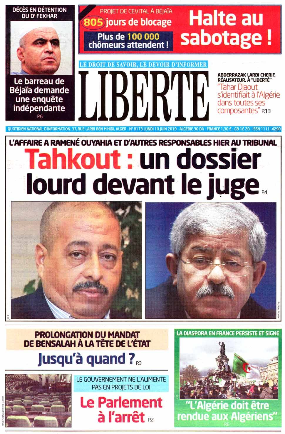 El Moudjahid L'Expression Le Soir Le temps Le Quotidien El Biled El Khabar Liberté Reporters El Watan