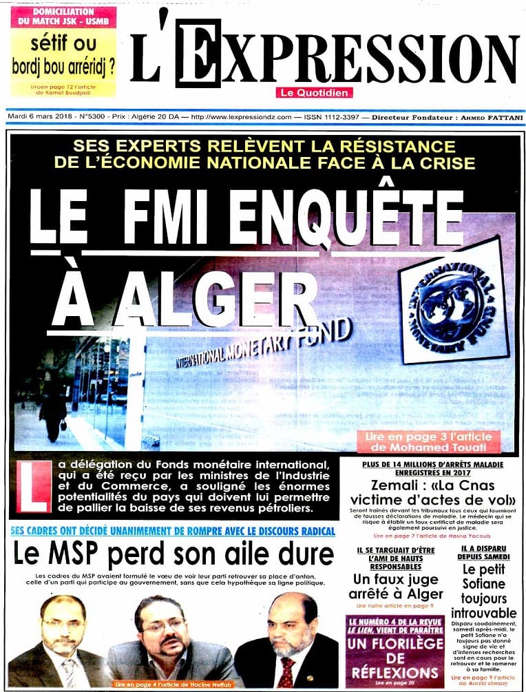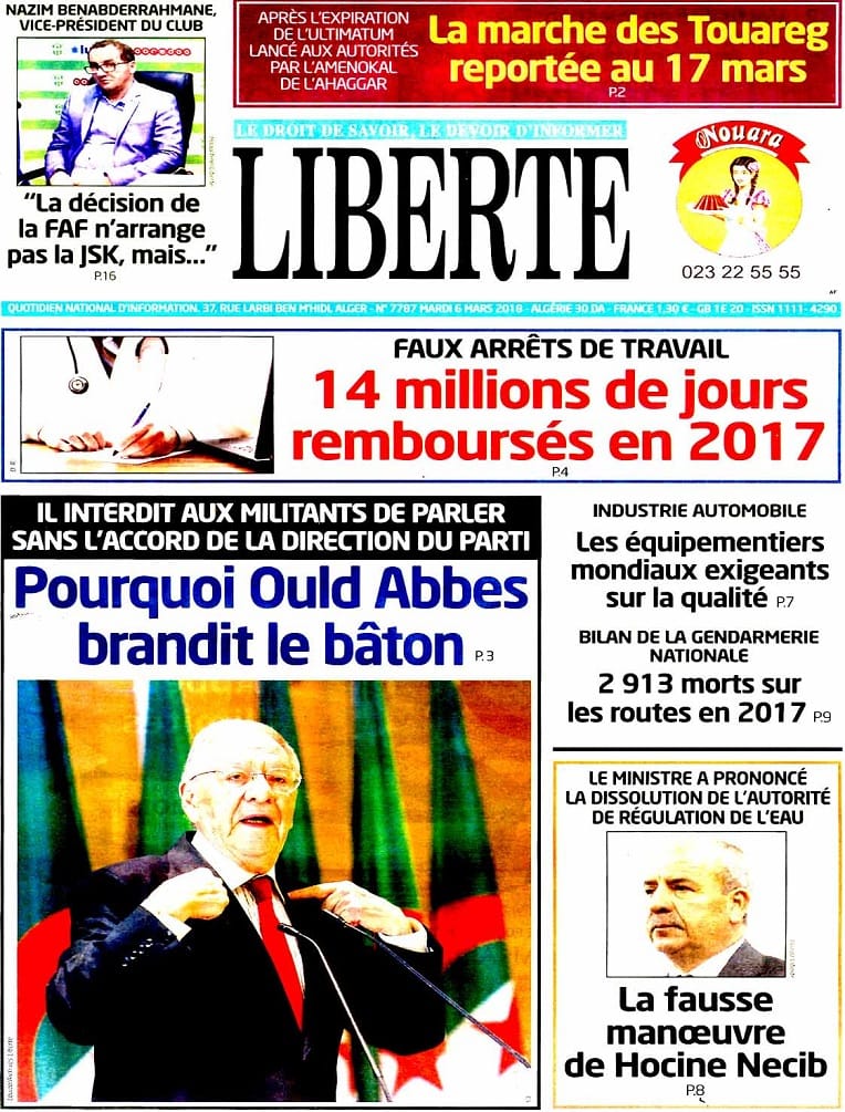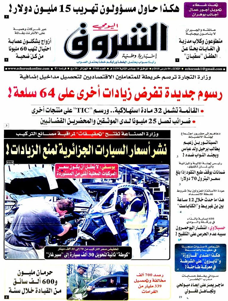 Echorouq El Khabar L'Expression Liberté El Moudjahid Le Quotidien d'Oran Le Soir d'Algérie Le Temps d'Algérie El  Watan