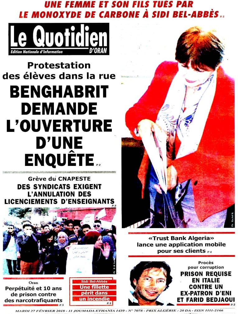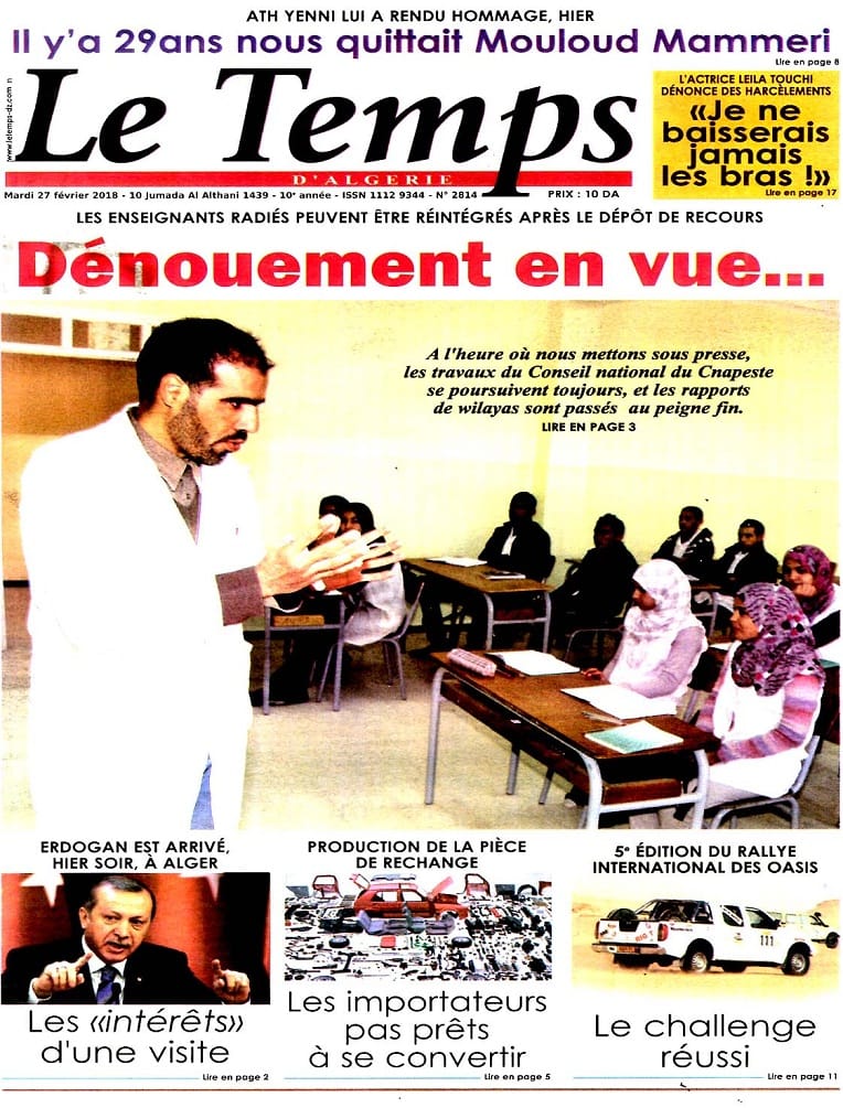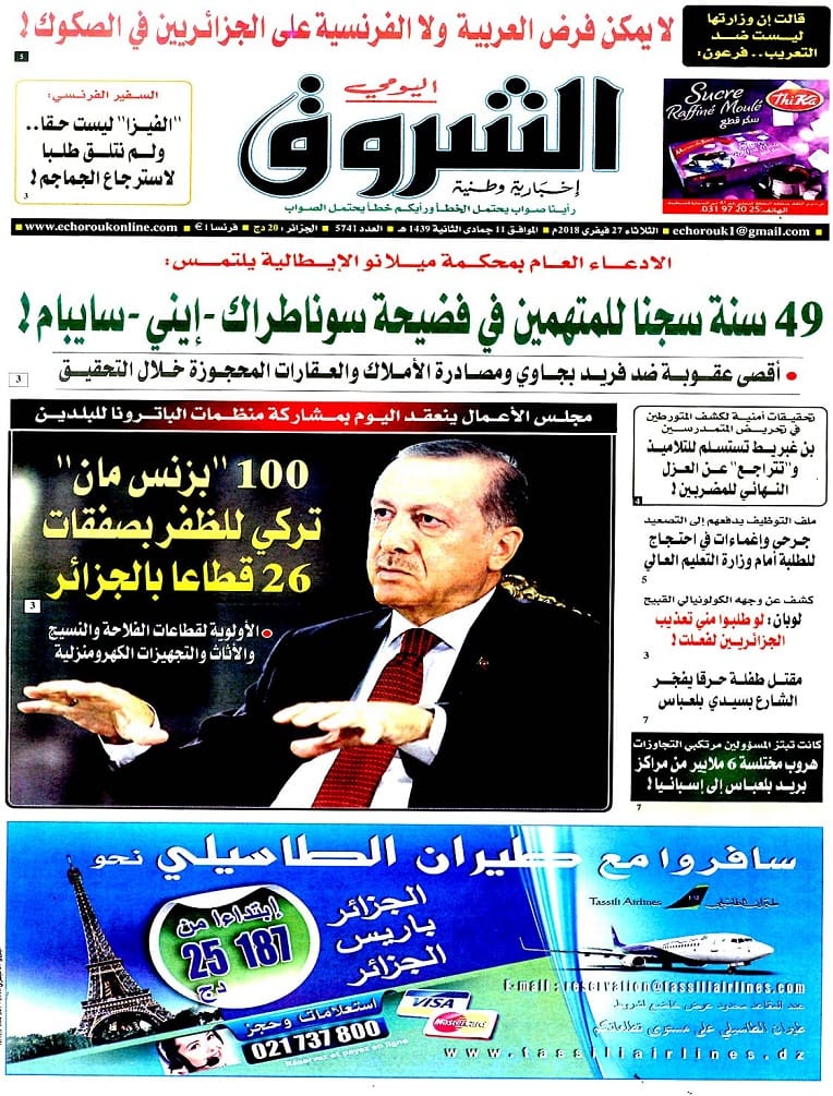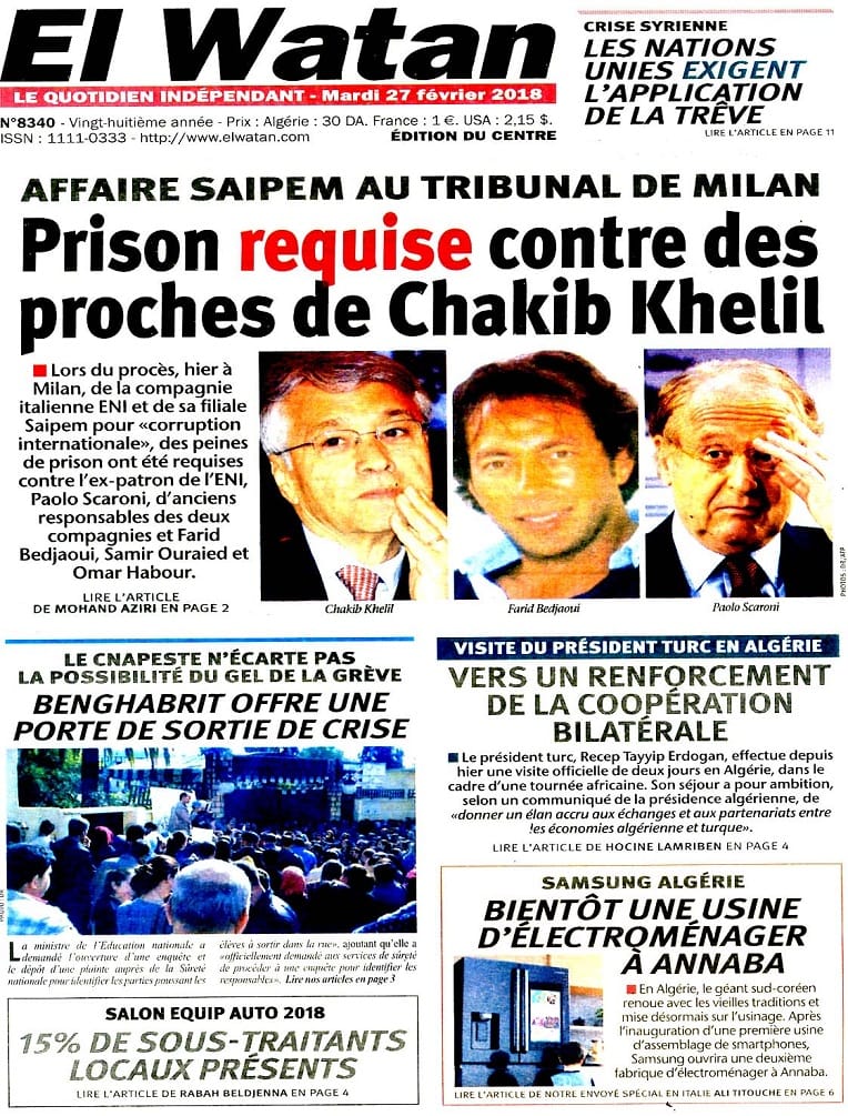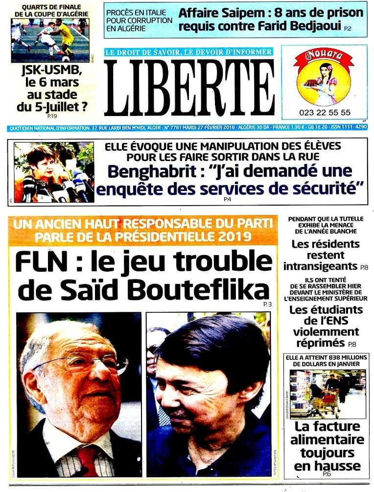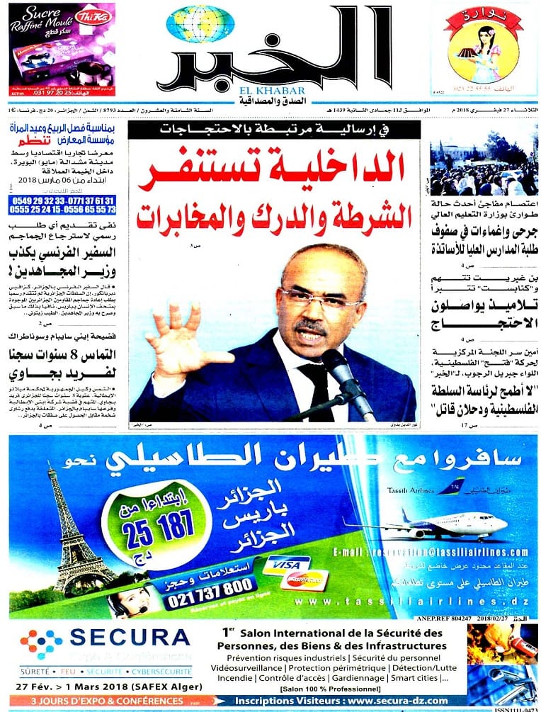 Echorouq El Khabar L'Expression Liberté El Moudjahid Le Quotidien d'Oran Le Soir d'Algérie Le Temps d'Algérie El Watan