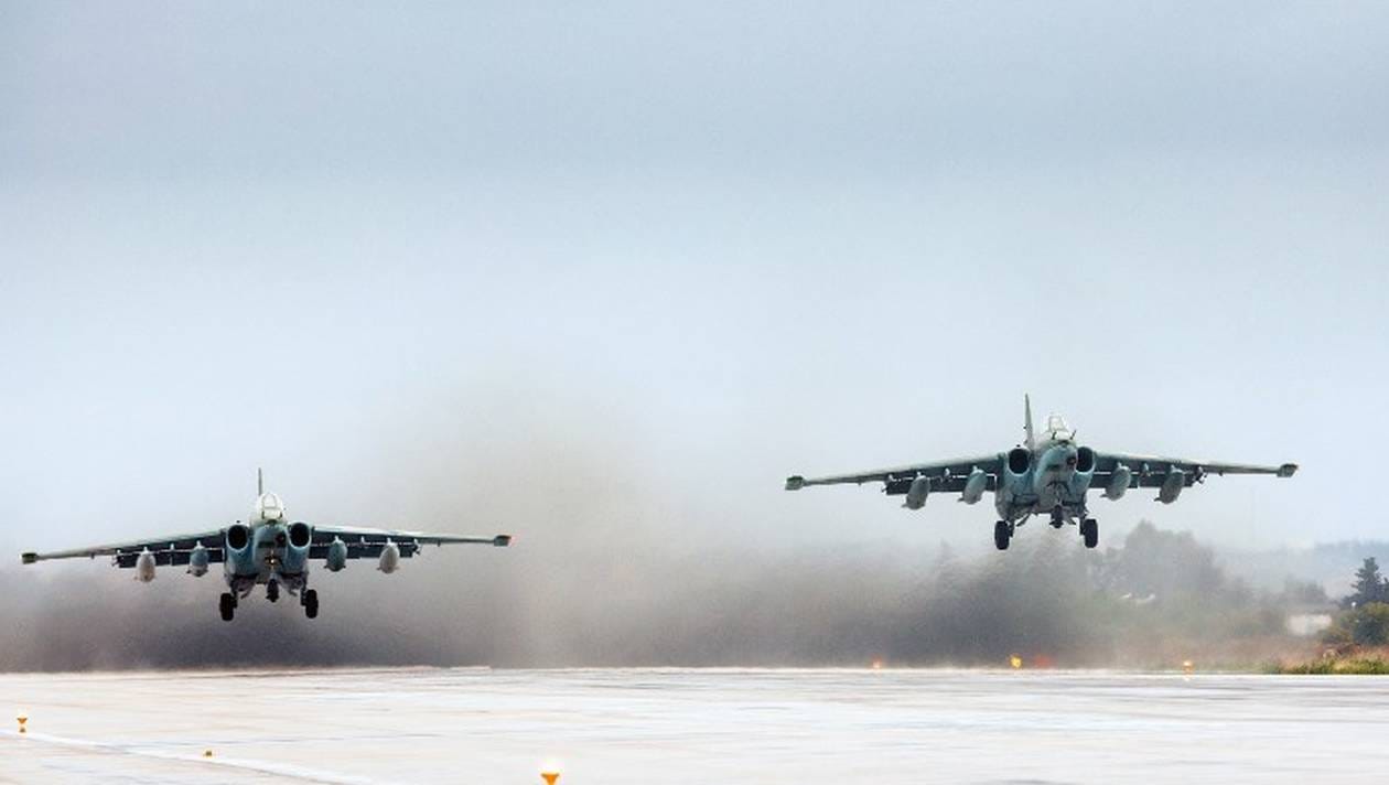 A handout picture taken on March 16, 2016 and released by the Russian Defence Ministry shows Russian Sukhoi Su-25 ground attack aircraft taking off from the Hmeimim military base in Latakia province, part of the partial withdrawal of Russian forces from Syria. AFP PHOTO / RUSSIAN DEFENCE MINISTRY / VADIM GRISHANKIN RESTRICTED TO EDITORIAL USE - MANDATORY CREDIT " AFP PHOTO / RUSSIAN DEFENCE MINISTRY / VADIM GRISHANKIN" - NO MARKETING NO ADVERTISING CAMPAIGNS - DISTRIBUTED AS A SERVICE TO CLIENTS / AFP PHOTO / RUSSIAN DEFENCE MINISTRY / Vadim Grishankin