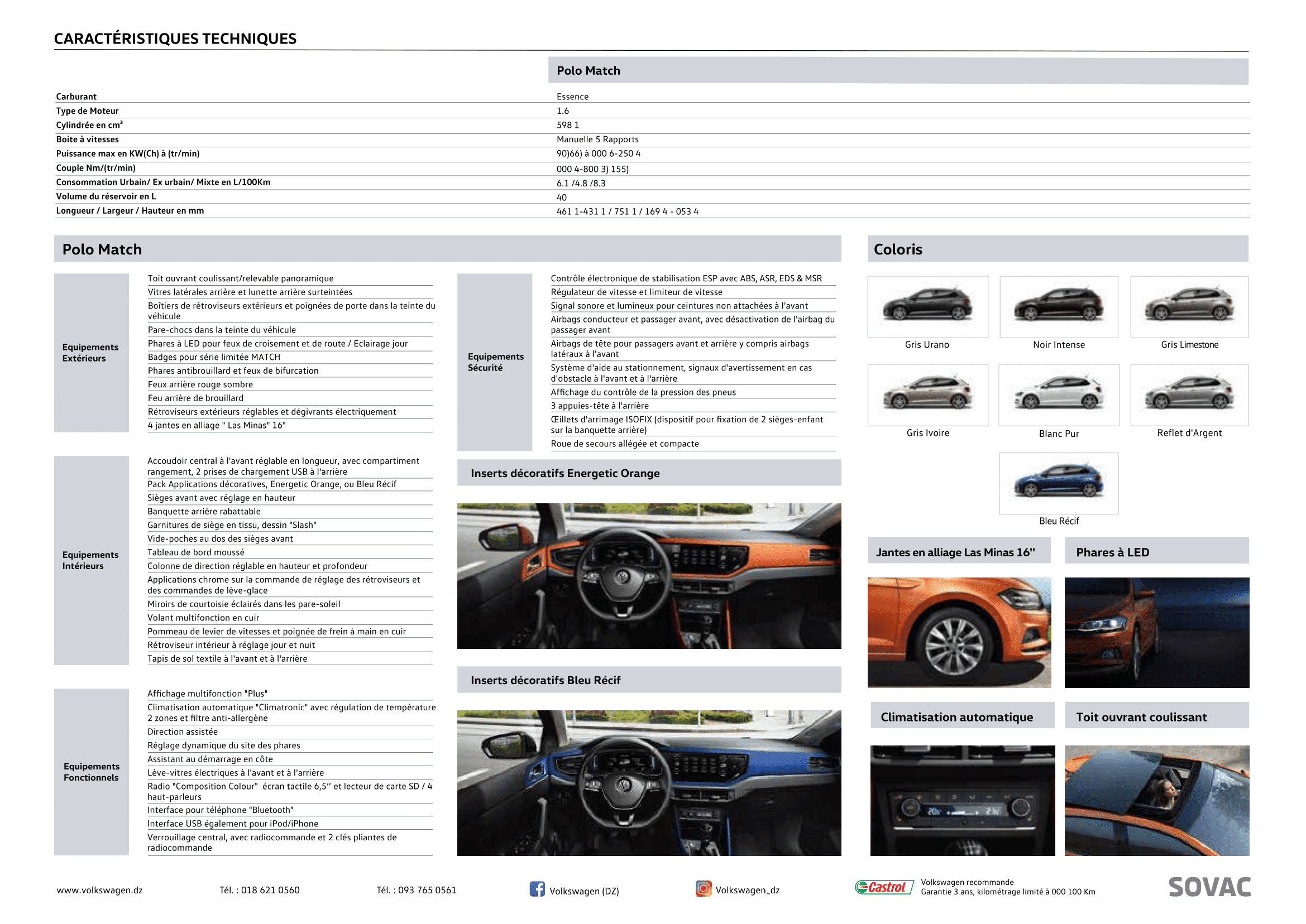 Pour remplacer la Polo Beats, SOVAC lance cette série limitée suréquipée très populaire « Match » en lui greffant de nombreux équipements de haut de gamme dont la climatisation automatique ‘’ Climatronic’’, un tableau de bord moussé très élégant, un accoudoir central, sellerie en tissu « Slash ».