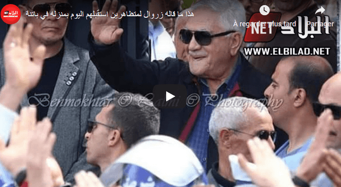 « Les précédents vendredis, il disait que c’était une révolte pacifique. Aujourd’hui, il dit que c’est révolte moubaraka (bénie). Il a dit que désormais, le peuple doit discuter directement avec l’armée et qu’il était prêt à tracer une feuille de route de sortie crise pour la présenter à l’armée », a dit un manifestant après sa rencontre avec Zeroual.
