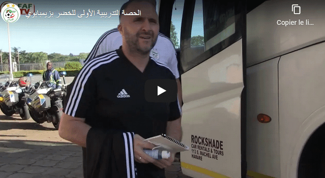 Sur cette vidéo publiée par la Fédération algérienne de football (FAF), les Verts en maillot rouge s’entraînent sur la pelouse qui semble en mauvais état du stade de Harare.