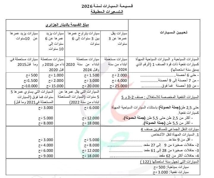 Les tarifs de la vignette auto 2026 varient entre 500 dinars et 25.000 dinars.